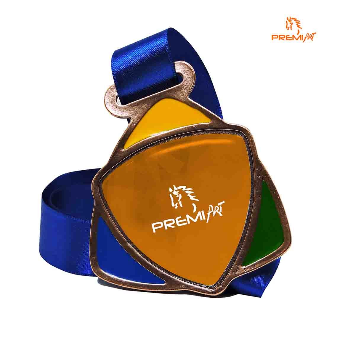 Medalha fundida em metal nas cores ouro, prata, bronze e grafitado.