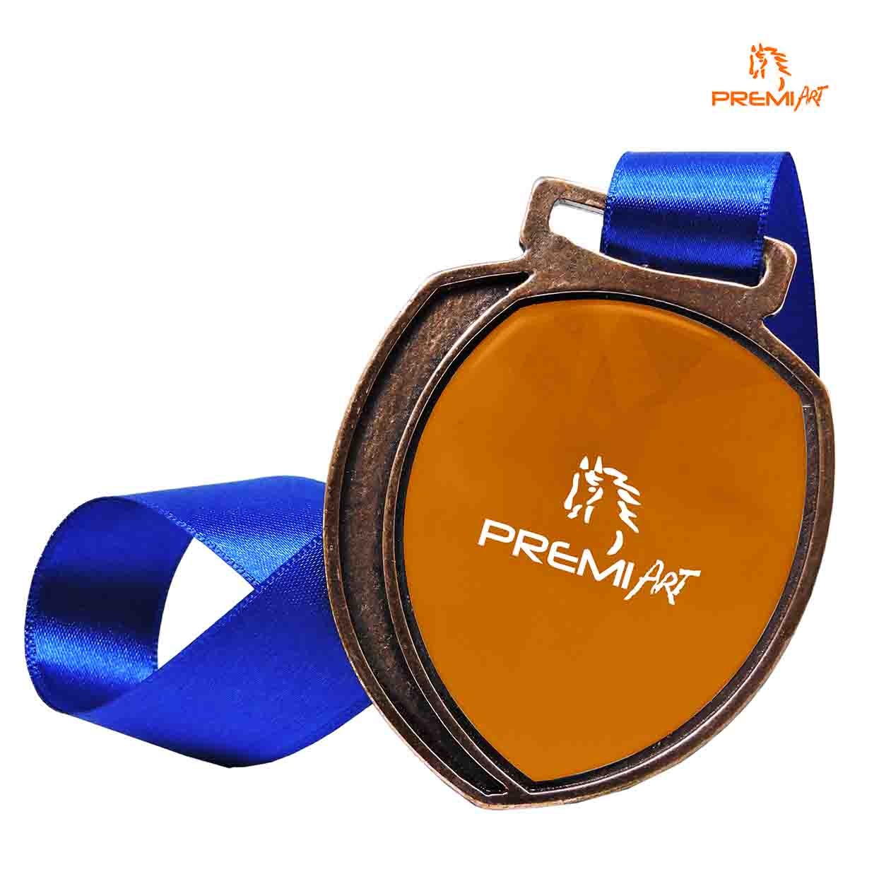 Medalha fundida em metal nas cores ouro, prata, bronze e grafitado.
